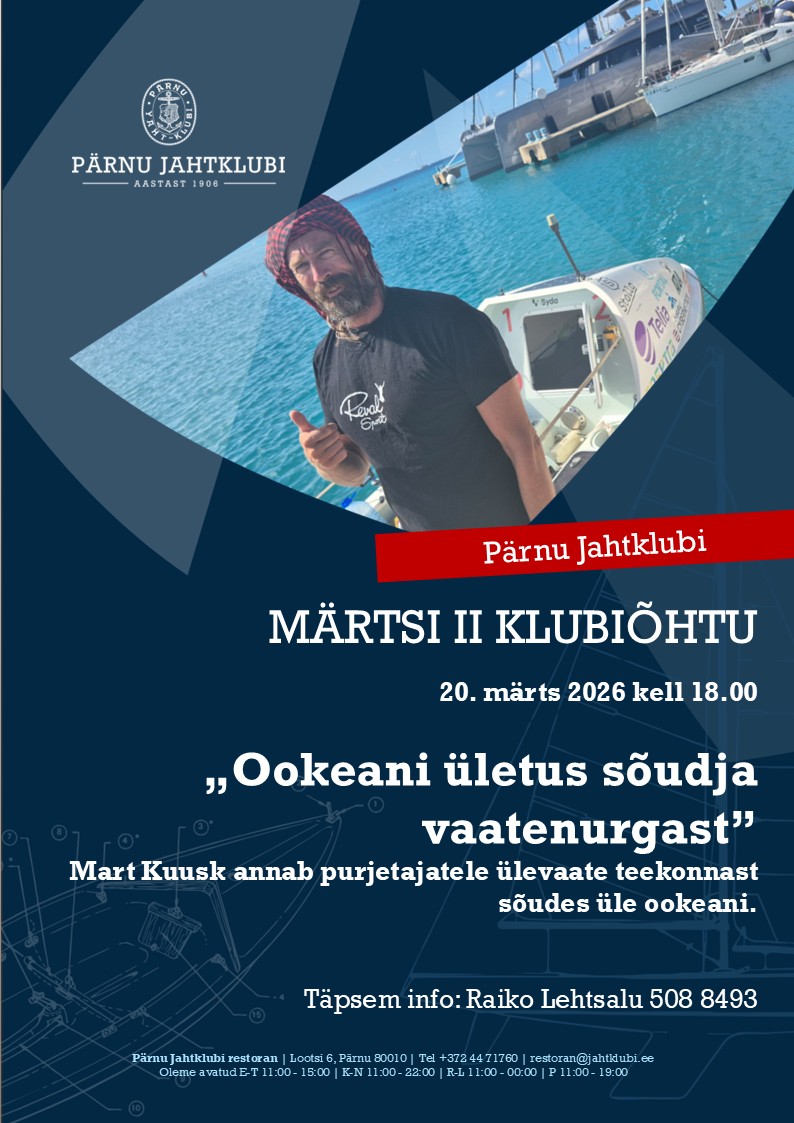 Märtsikuu klubiõhtud 18. veebruar 2026 Hea klubiliige, märgi oma kalendrisse ka märtsikuu kaks klubiõhtut.