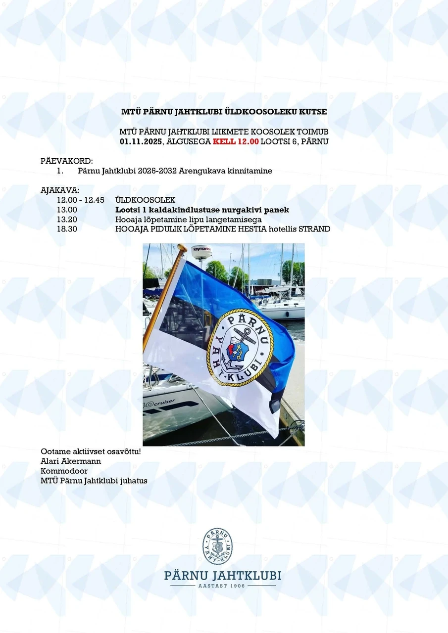 Pärnu Jahtklubi üldkoosolek ja Lootsi 1 kaldakindlustuse nurgakivi panek
